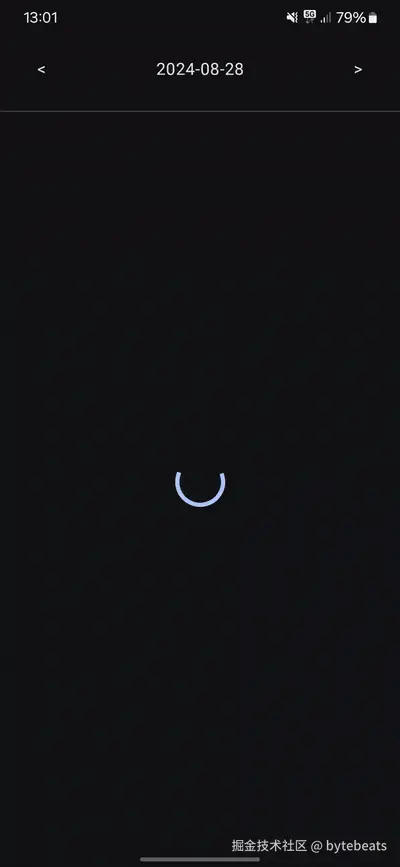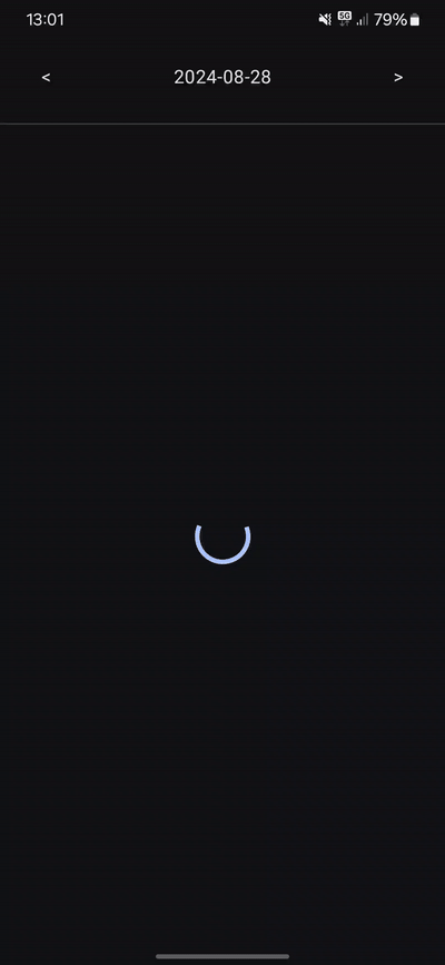<和>, 用于将日期更改为前一天或后一天. - 屏幕的其余部分是一个组件, 根据所选日期显示工作日. 它假装从某个地方加载这个工作日, 并且它有一个针对所选日期的 ViewModel.
