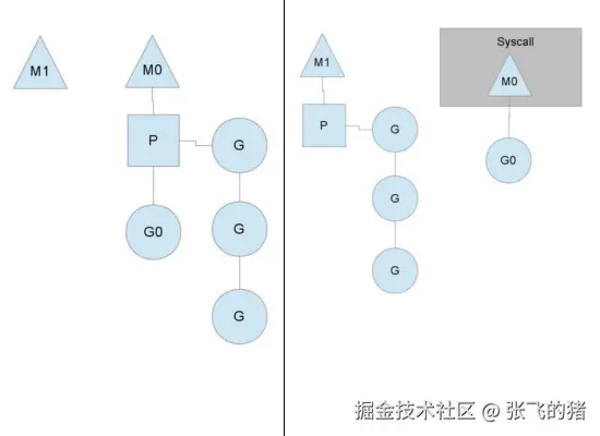 - Channel操作:如在无缓冲Channel上进行发送或接收操作时,如果没有对应的接收者或发送者,Goroutine会被挂起。