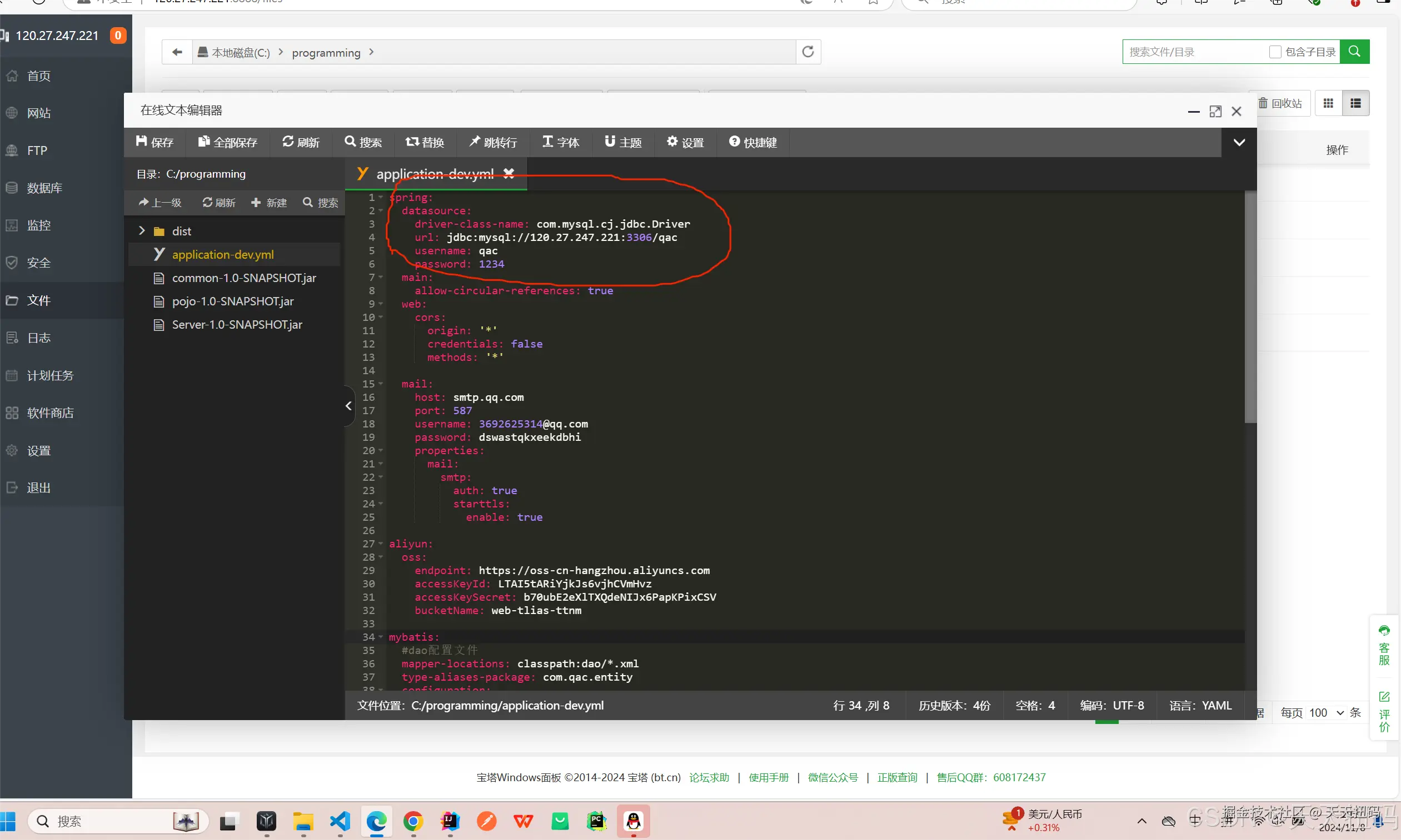 6.改一下项目的配置文件,将数据库的配置该成云服务器上的数据库,划红圈的那一部分哈