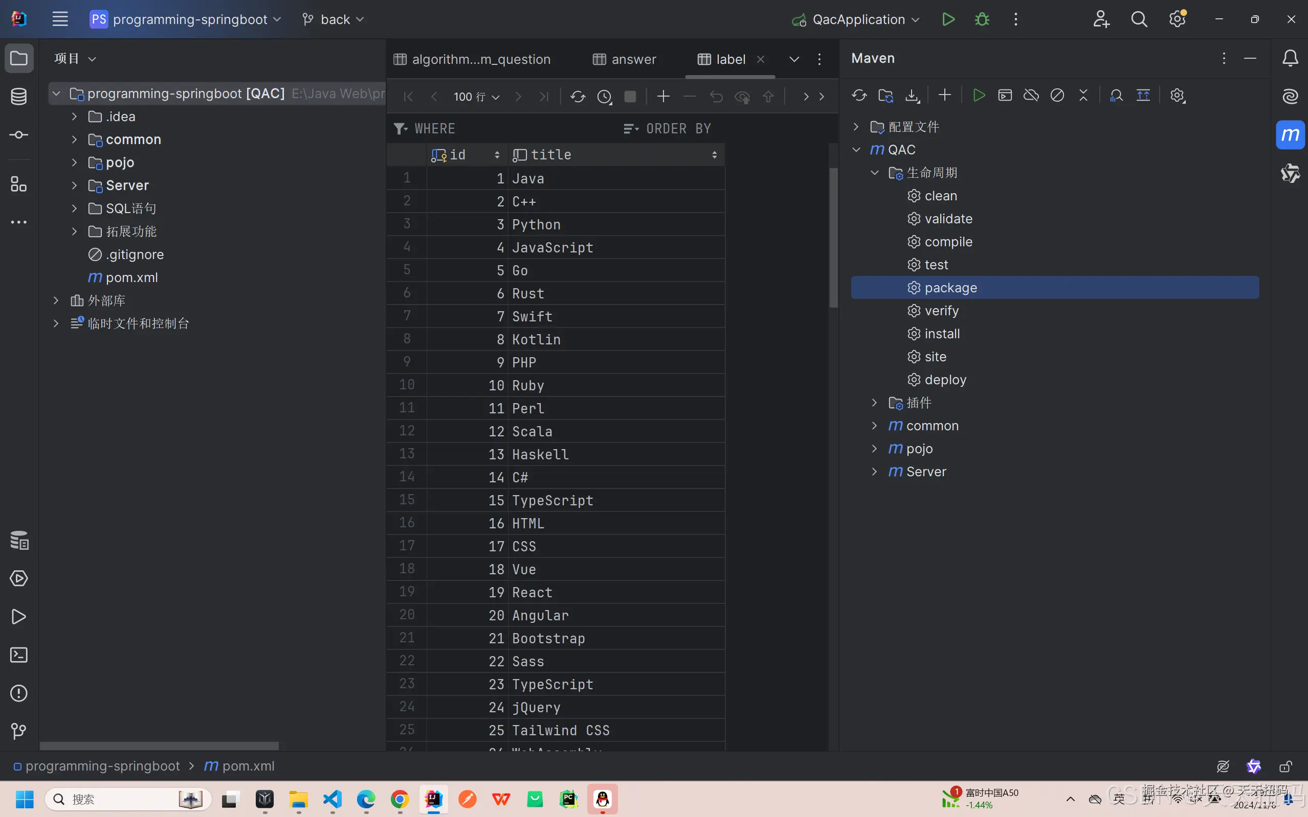 1.我们部署时部署的是项目的jar包,我们可以通过Maven项目的package功能得到jar包,点击package进行打包