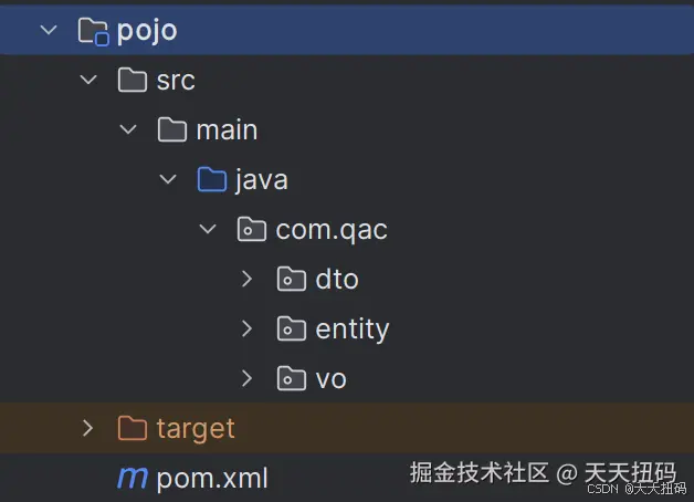 pojo模块负责管理项目中全局可以用到的实体类等,比如Admin、User等实体类