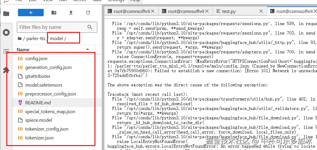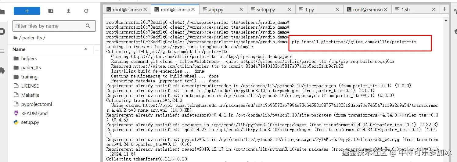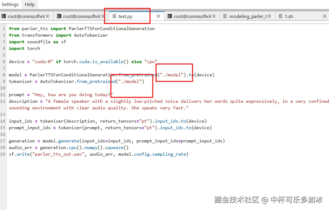 cd进入Parler-tts项目,然后终端输入python test.py