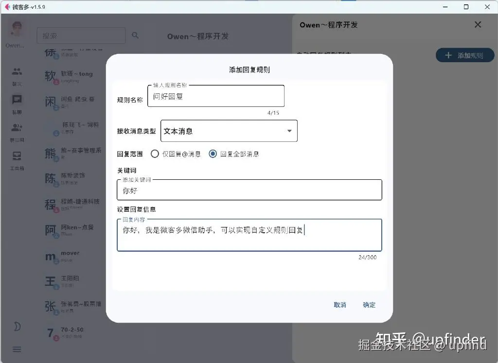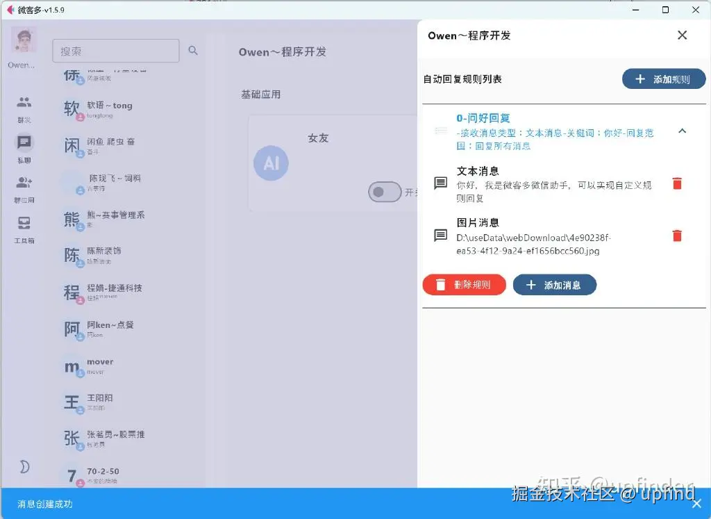 自定义回复应用,可以让你对特定的好友预设多条规则,通过设置触发条件和回复内容,满足一些比较有规律性的自动化场景需求