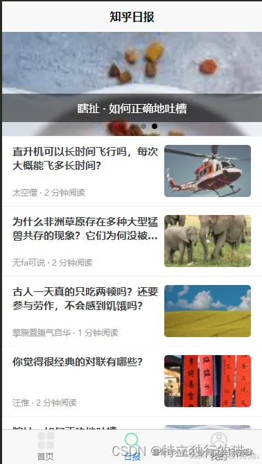 接下来,我们定义一个名为ZhiHu的组件,在这个组件中我们将实现轮播图效果及标题展示。