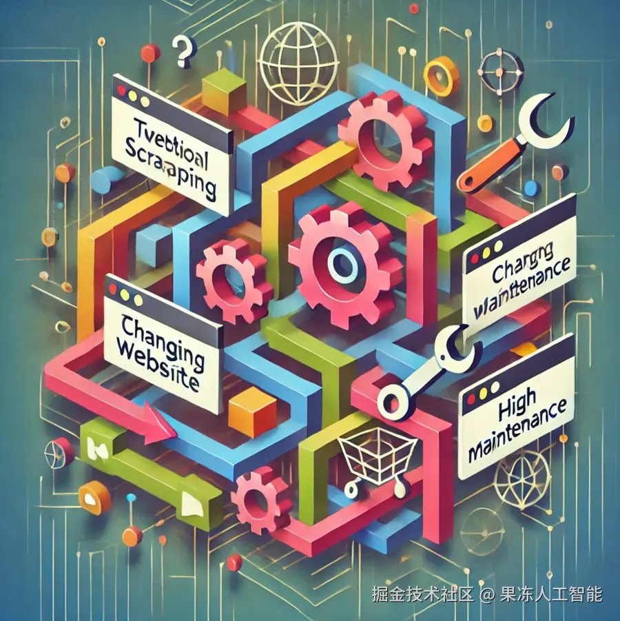 自2024年以来,随着 AI 的发展,网页抓取发生了巨大的变化。以前,大公司如亚马逊或沃尔玛为了保持价格竞争力,必须花费大量时间和金钱抓取其他网站的数据。这些公司通过模拟浏览器的操作来实现:向网站发送请求获取 HTML 代码,再使用特定代码找到并提取需要的信息。然而,这一过程复杂且耗时,特别是当网站设计变动时,爬虫需要不断修复和更新。