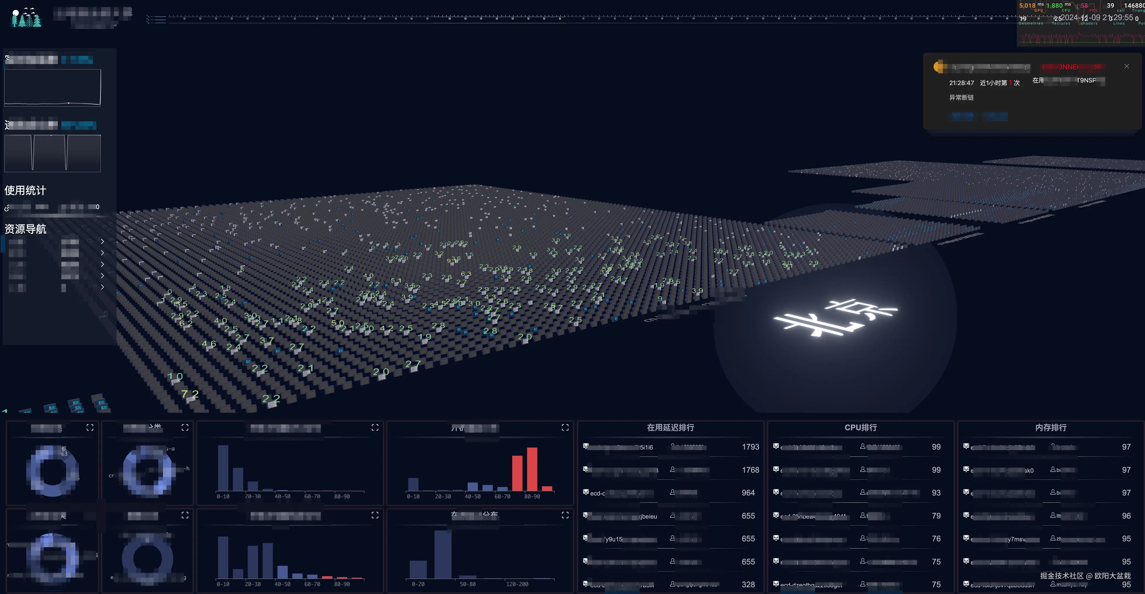 上图是一个机器监控页面,需要对开机的机器做一个指标监控,并显示在孪生空间中