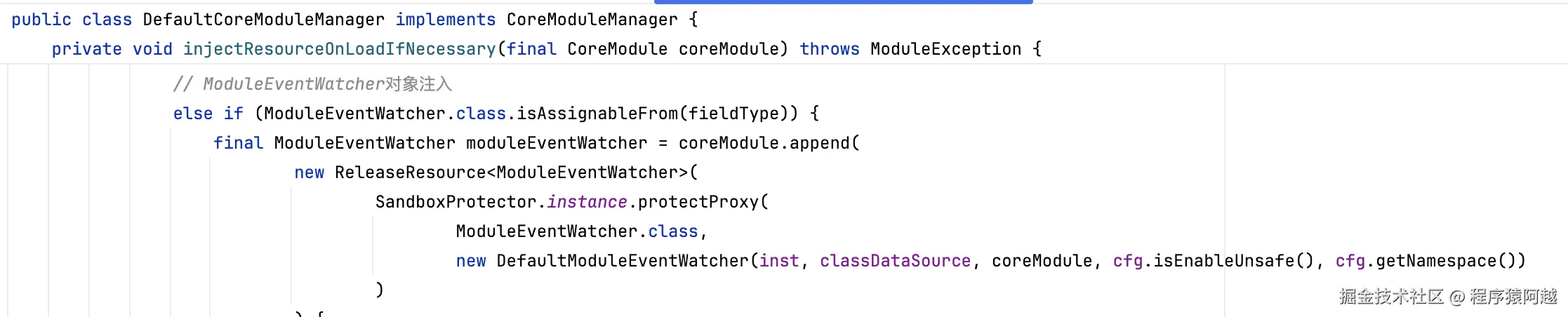 用户在Module中通过Resource注入ModuleEventWatcher,调用ModuleEventWatcher#watch: