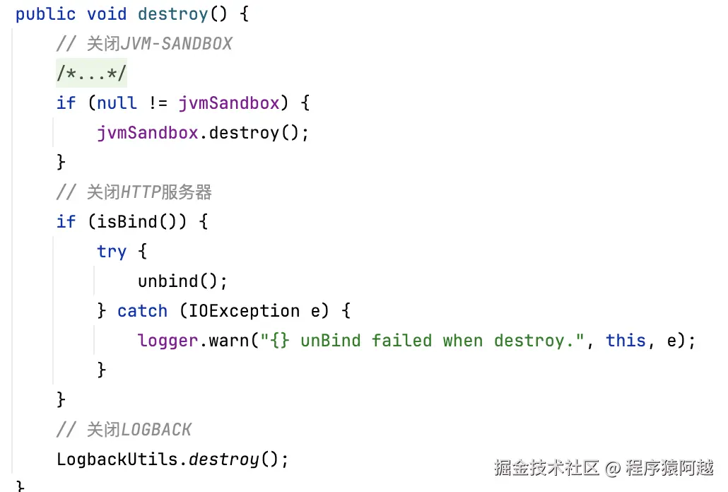 JettyCoreServer#destroy:关闭JvmSandbox、关闭JettyServer、关闭logback。