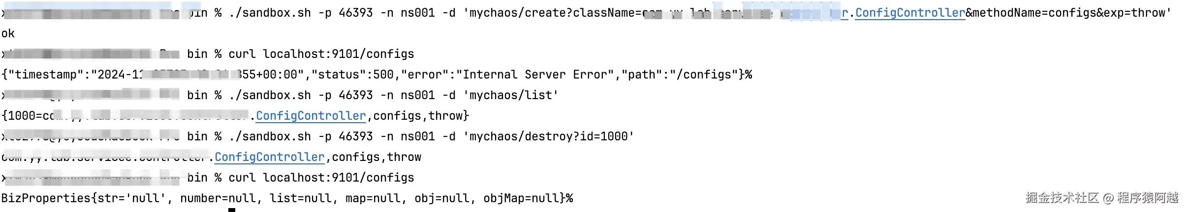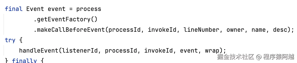 EventListener#onEvent:当到达增强点触发,这里支持延迟和异常两种实验。通过抛出ProcessControlException异常,可以控制用户代码执行逻辑,比如抛出自定义异常或立即返回指定对象。