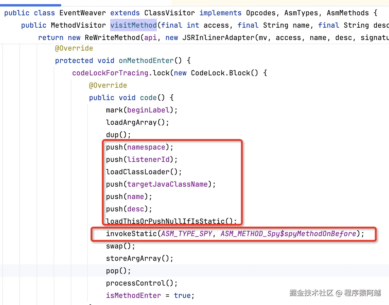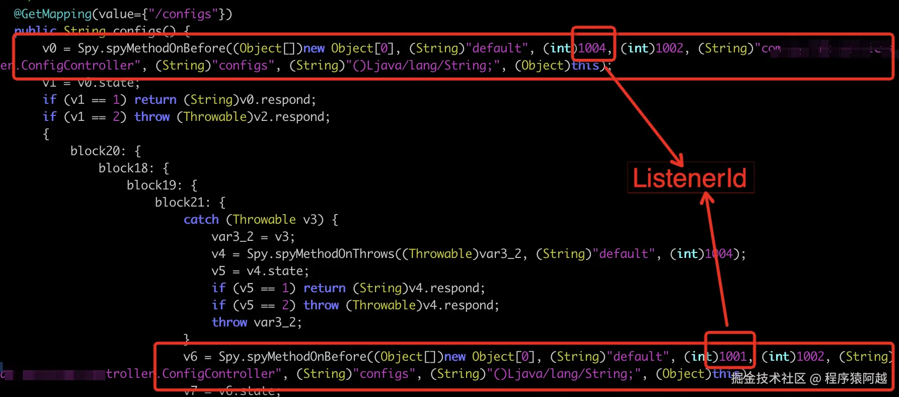 1)在方法前后和异常时,调用Spy的静态方法执行EventListener;