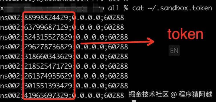 agentmain将token、namespace、http服务ip和port写入家目录的.sandbox.token文件中。