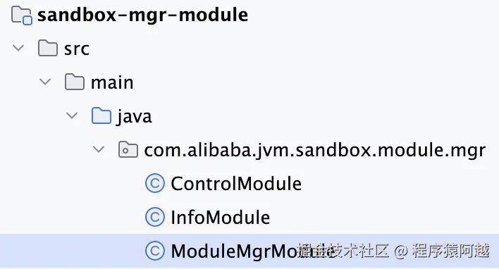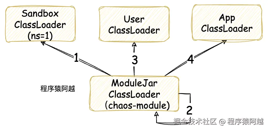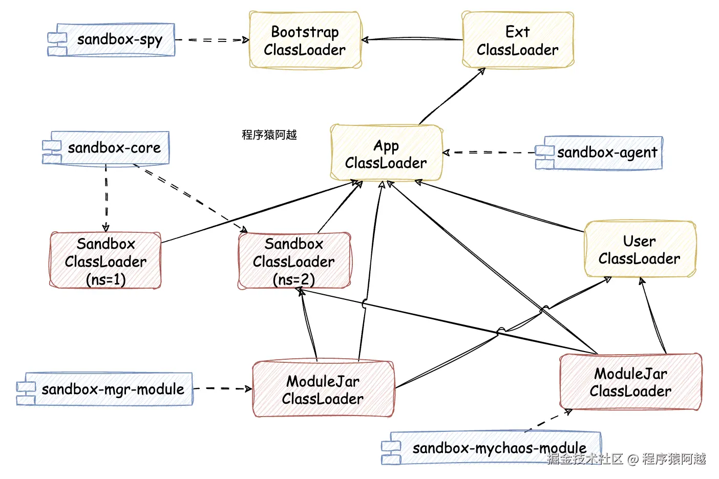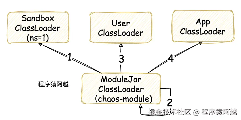 ModuleJarClassLoader:每个ns下的一个模块jar对应一个ModuleJarClassLoader,sandbox默认提供sandbox-mgr-module模块实现模块管理功能。