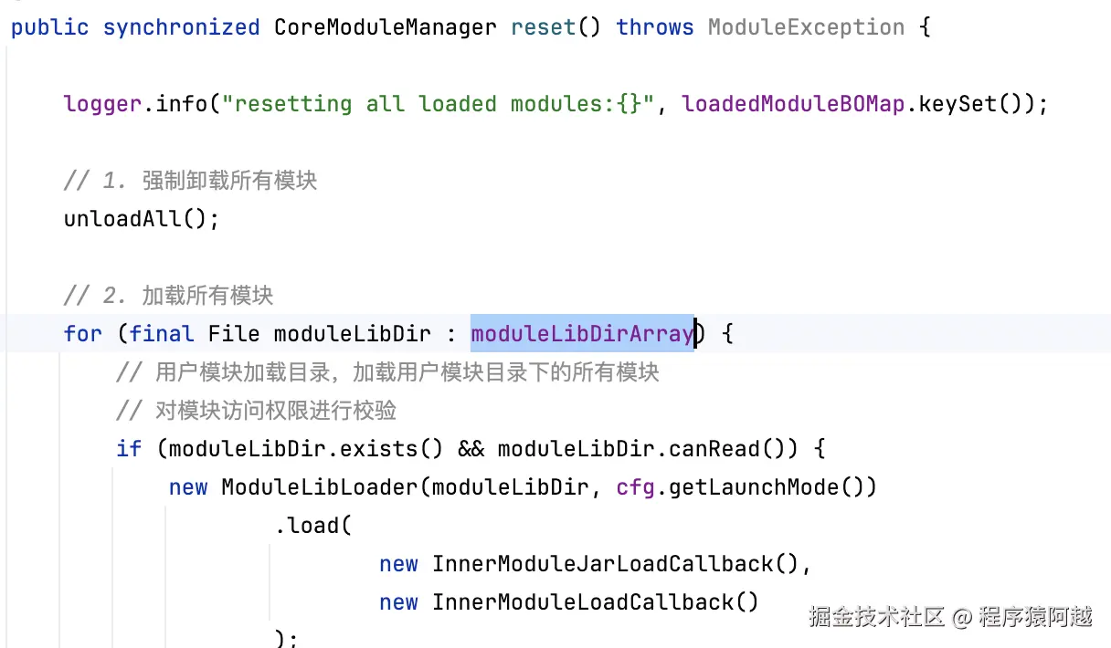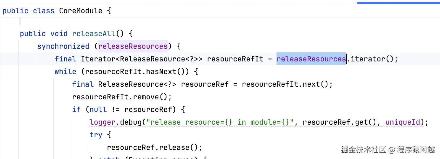 CoreModule#releaseAll:在Module中缓存了一些需要释放的资源,在结束后需要释放。