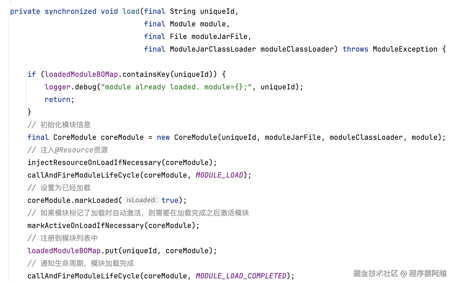 1)如果Module实现ModuleLifecycle,触发onActive回调;