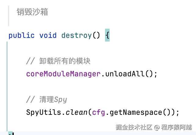 JvmSandbox#destroy:卸载所有Module,将ns下的单例SpyHandler(EventListenerHandler)从Spy中注销。
