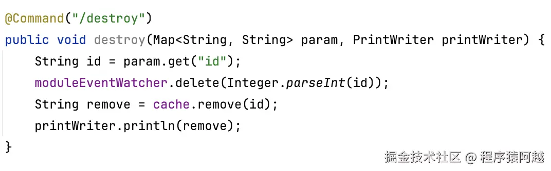销毁实验,调用ModuleEventWatcher#delete传入watchId,清理缓存。