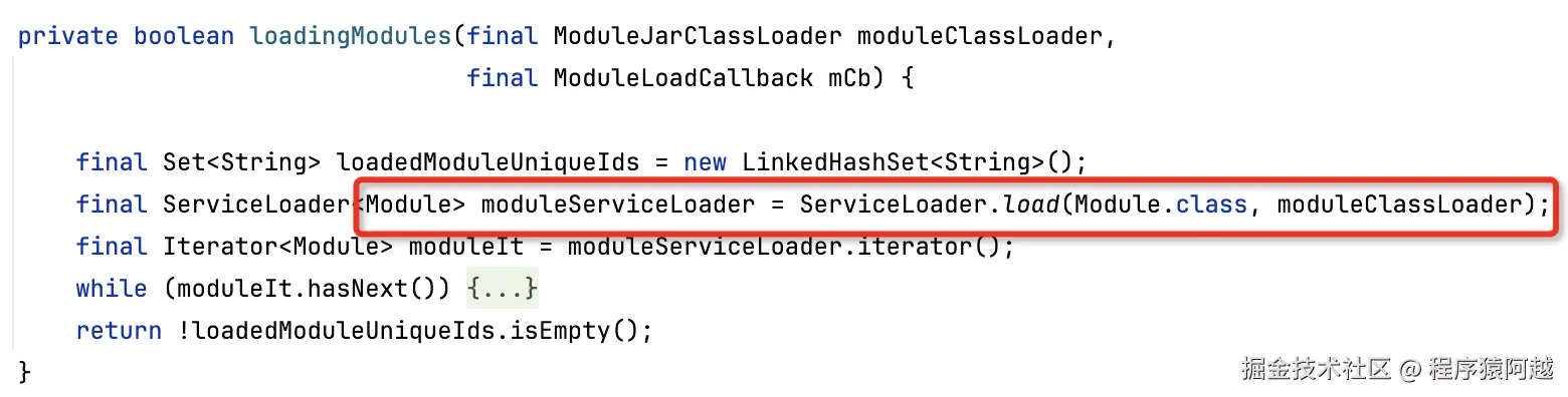 Module通过SPI方式发现,在META-INF/services/com.alibaba.jvm.sandbox.api.Module中写入Module完全限定类名。
