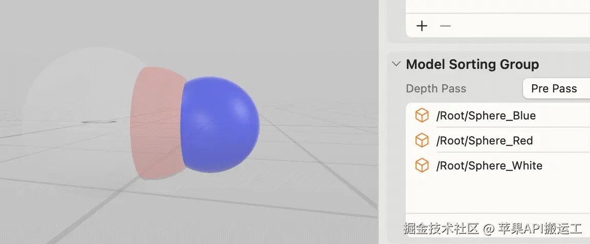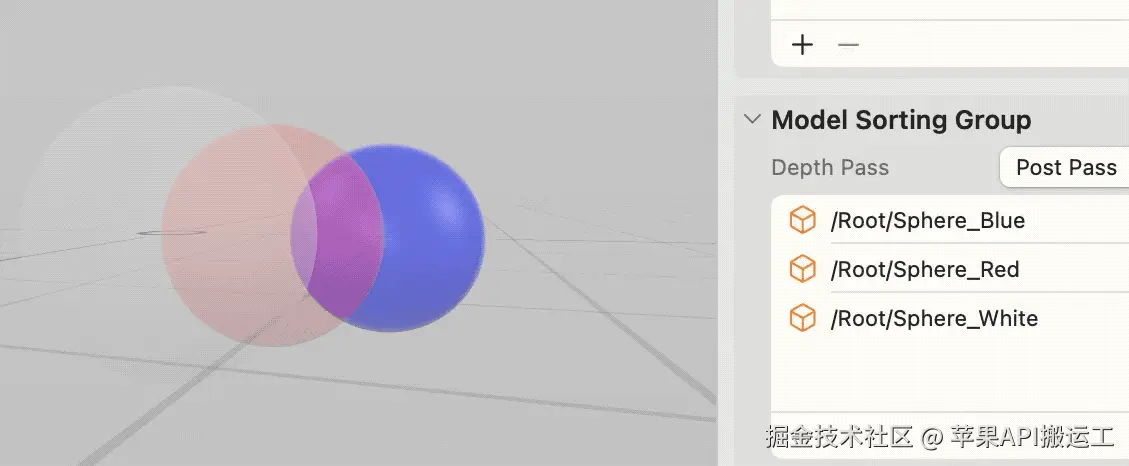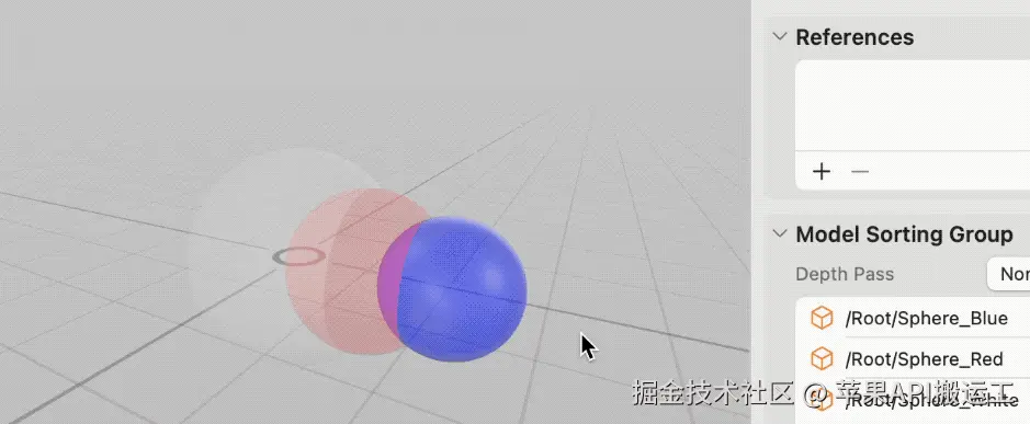 像其他的游戏引擎一样,RealityKit 中提供了 ModelSortingGroup 来控制渲染排序,提供了 Depth Pass 来处理颜色混合策略,让大家选择不同的近似策略,希望本文能帮助大家理解原理,更好做出选择。