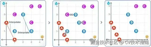 如上图所示,ADASYN重点在少数类(A)邻近多数类(B和C)的"困难区域"附近生成新的合成样本。对于多数类,其新样本也是在类似区域生成。