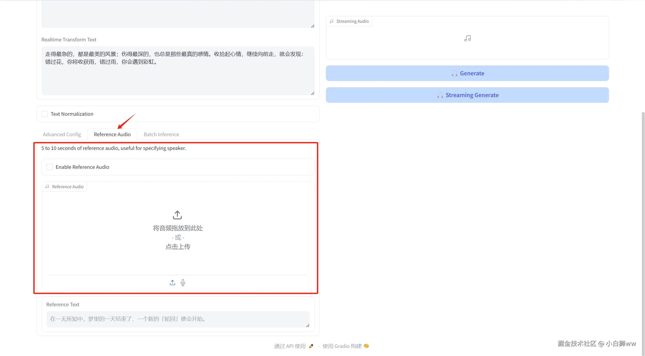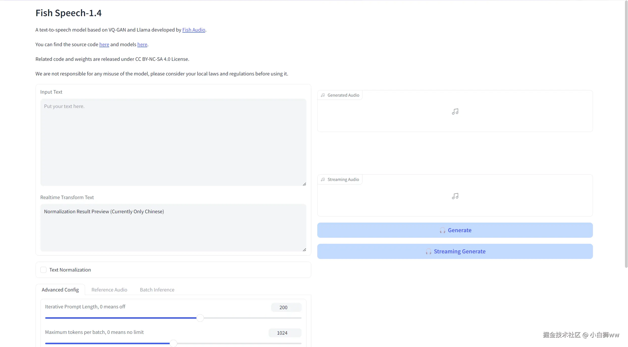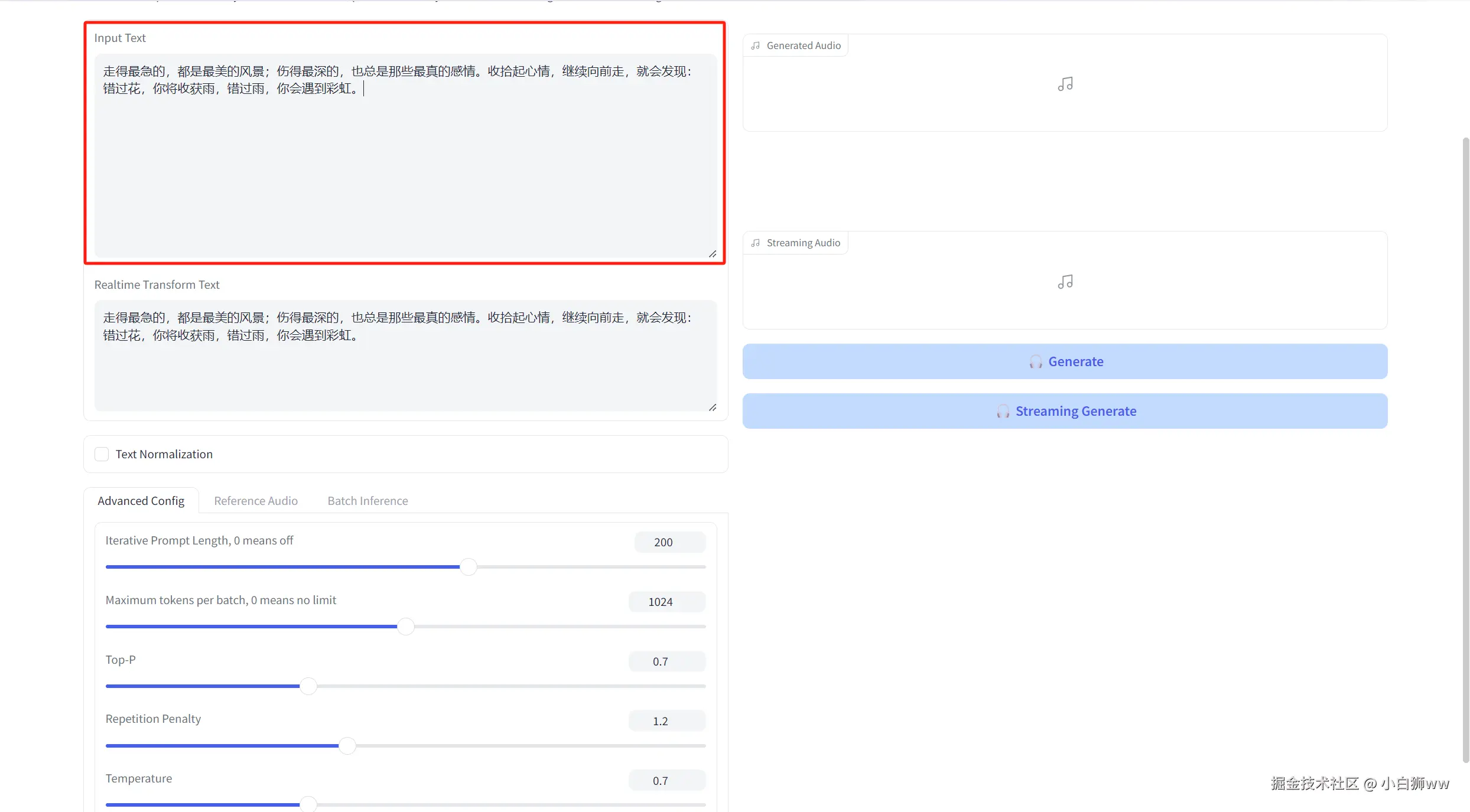 「Batch Inference」则表示生成语音的个数,默认值为「1」。