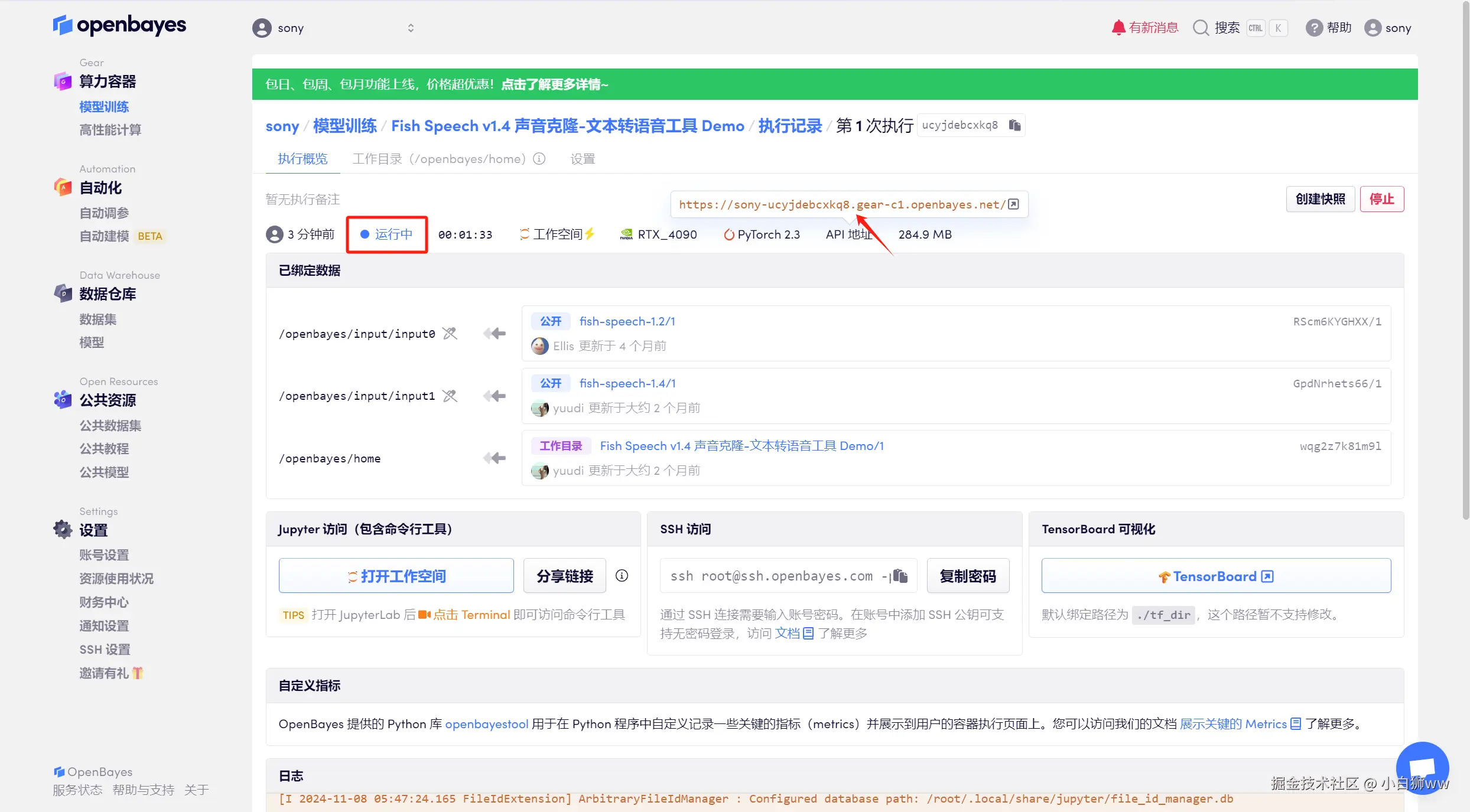 使用云平台:OpenBayes