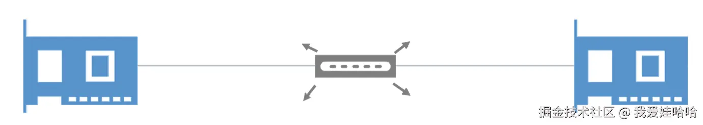 然后,我们再明确另一个基本的概念。**在一个局域网中,我们不可以将消息从一个接口(网卡)发送到另一个接口(网卡),而是要通过交换机 **。为什么是这样呢?因为两个网卡间没有线啊!所以数据交换,必须经过交换机,毕竟线路都是由网卡连接交换机的。