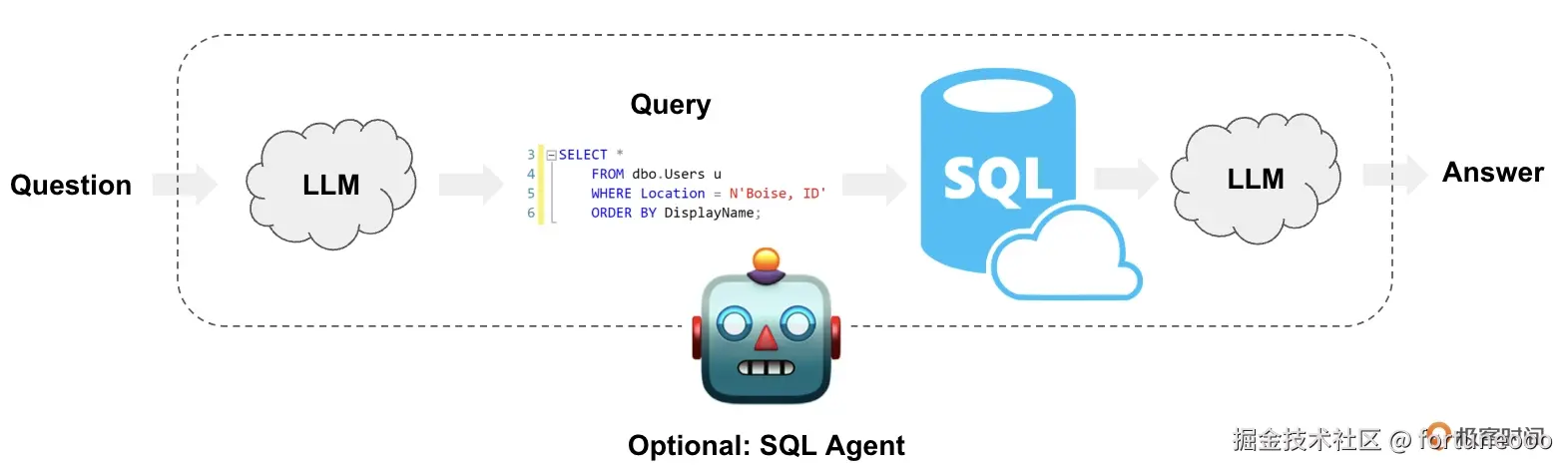 - 提供答案:最后,LLM将结果转化为自然语言答案,并返回给用户。例如“去年的总销售额为1,000,000元”。