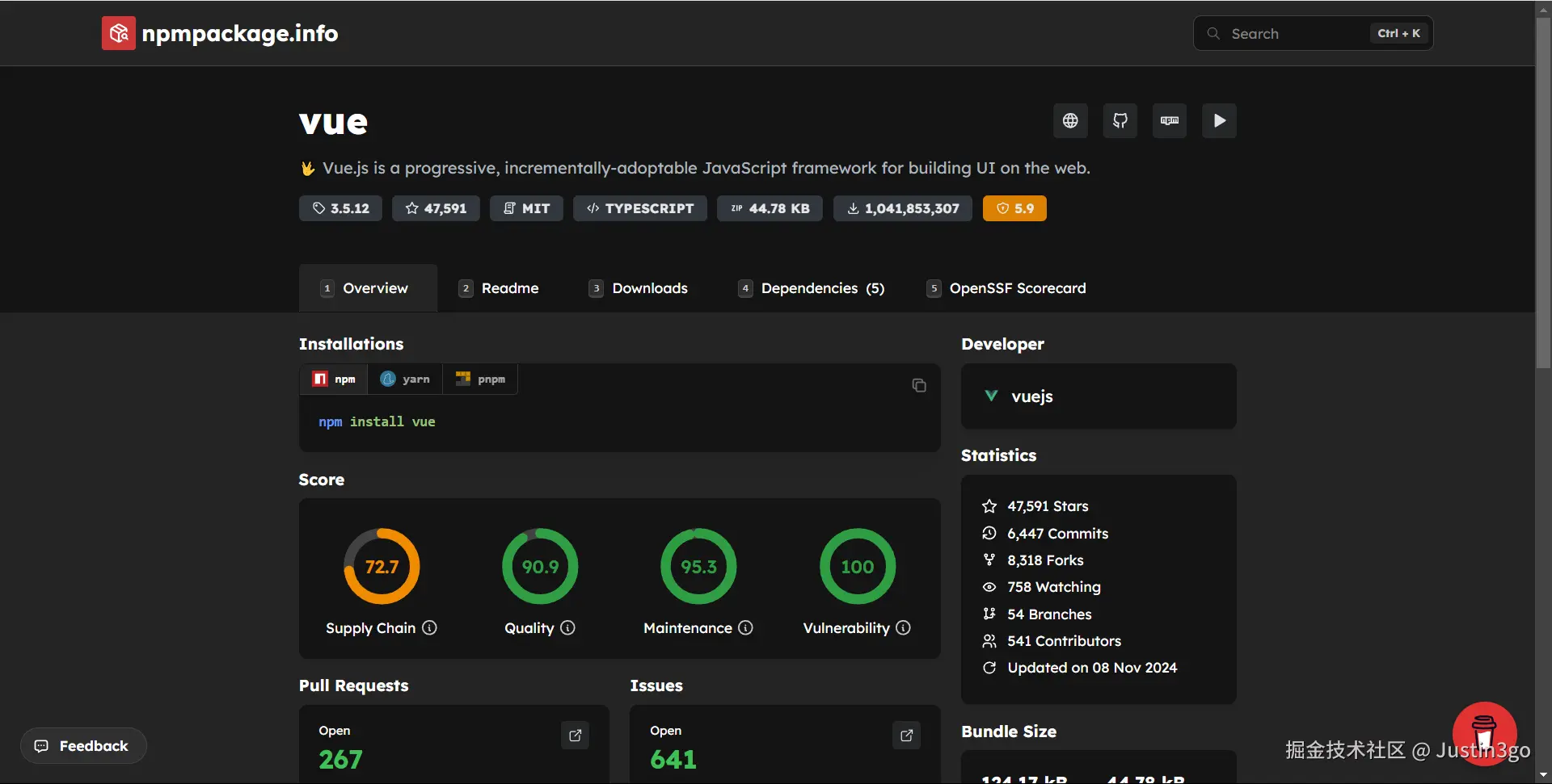 发现有关 npm 包的详细信息
