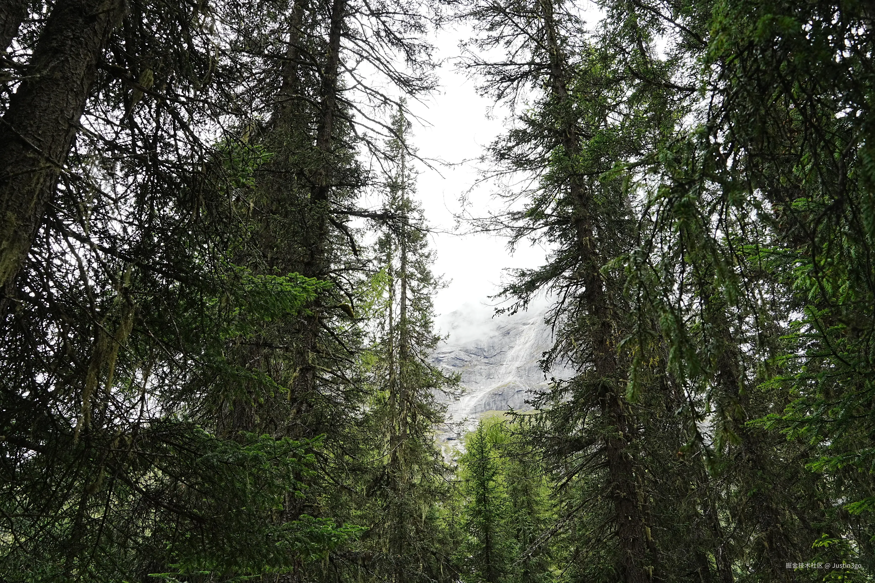 从树的夹缝里看雪山,当然,雪山过曝了,前几张图片也忘记开raw了...
