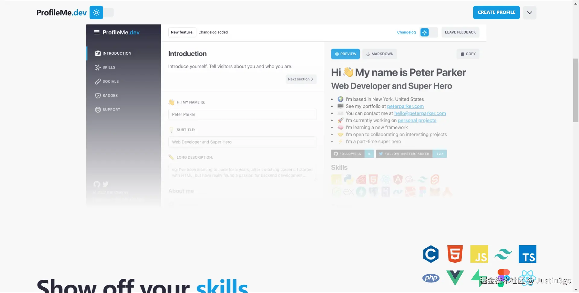 通过一些表单输入,就能得到一个看着还不错得github主页。