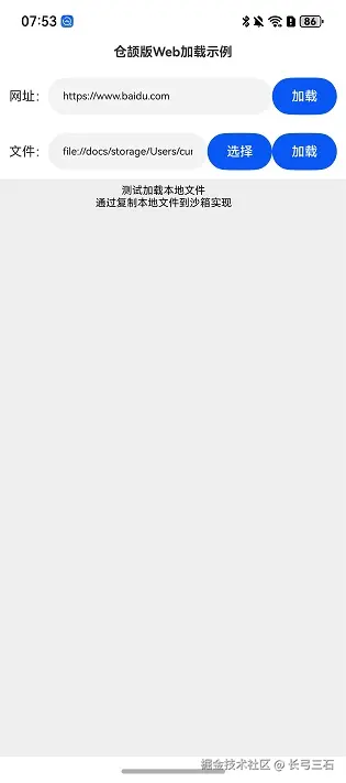 在加载本地文件时,需要复制本地文件到沙箱目录,再进行加载,加载时需要注意文件的路径格式,这里使用的是file前缀,对应代码如下所示: