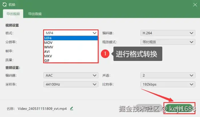步骤5:为了方便您将视频在不同设备和平台上播放和分享,我们可以在 【历史记录】 页面中对视频进行格式转换的操作。