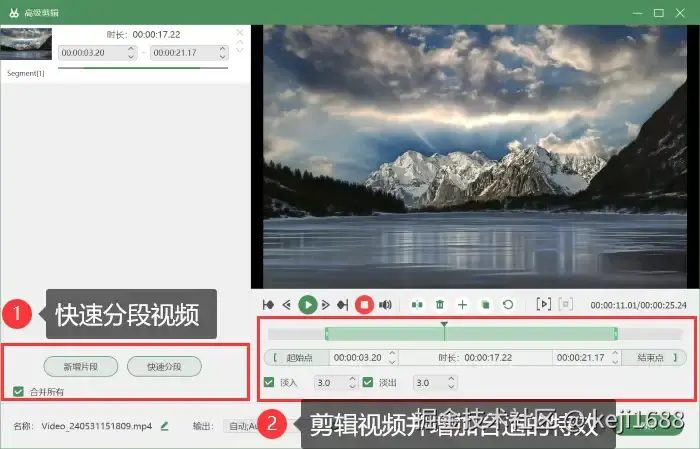 步骤4:录制过程中还可以使用 【Alt+C】 进行屏幕截图,按下 【Alt+R】 快速停止录屏,视频将弹出预览,我们可以点击进入 【高级剪辑】 页面对视频进行剪辑等操作。