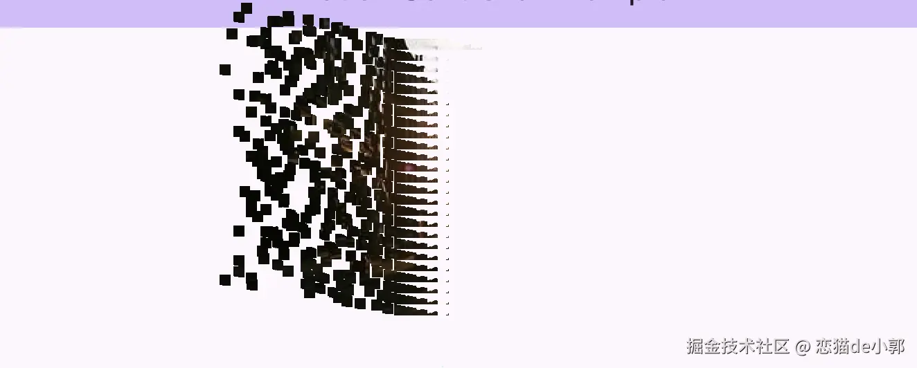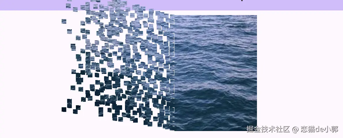 在之前的《不一样的思路实现炫酷 3D 翻页折叠动画》我们其实介绍过:如何使用 Shader 去实现一个 3D 的翻页效果,具体就是使用 Flutter 在 3.7 开始提供 Fragment Shader API ,因为每个像素都会过 Fragment Shader ,所以我们可以通过写一个 Fragment Shader 的 glsl 文件来处理图片的像素效果,例如下图这样的粒子化效果: