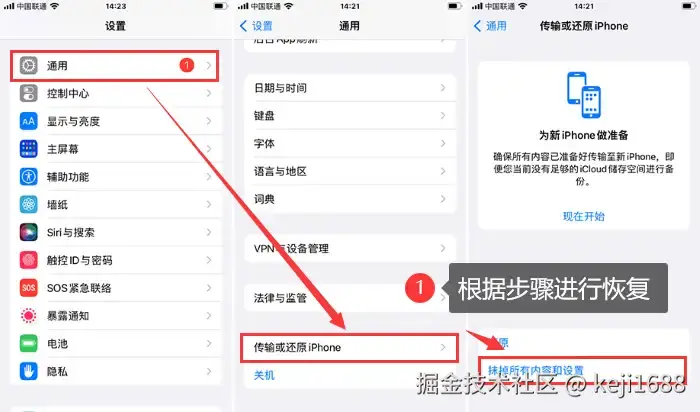 步骤2:若有,可以选择从 【抹掉所有内容和设置】 中恢复整个备份,从而找回备忘录内容。(注意,这会影响其他应用的数据。)