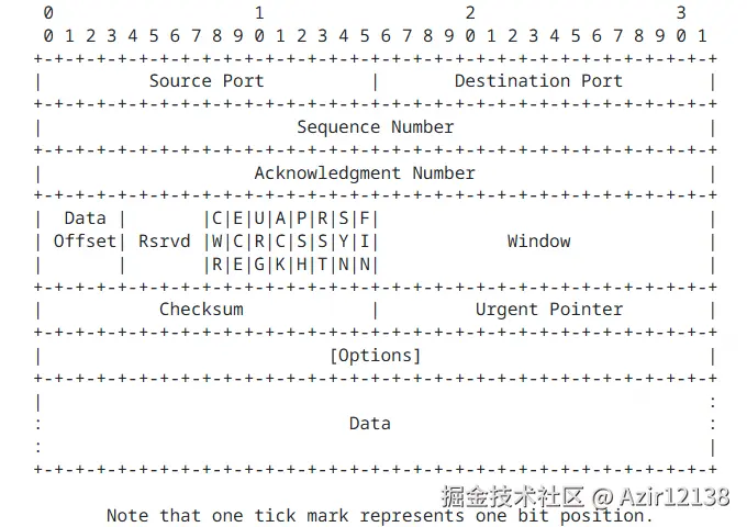 我们先来看看TCP协议的报文格式长什么样的先,具体格式文档:datatracker.ietf.org/doc/html/rf…