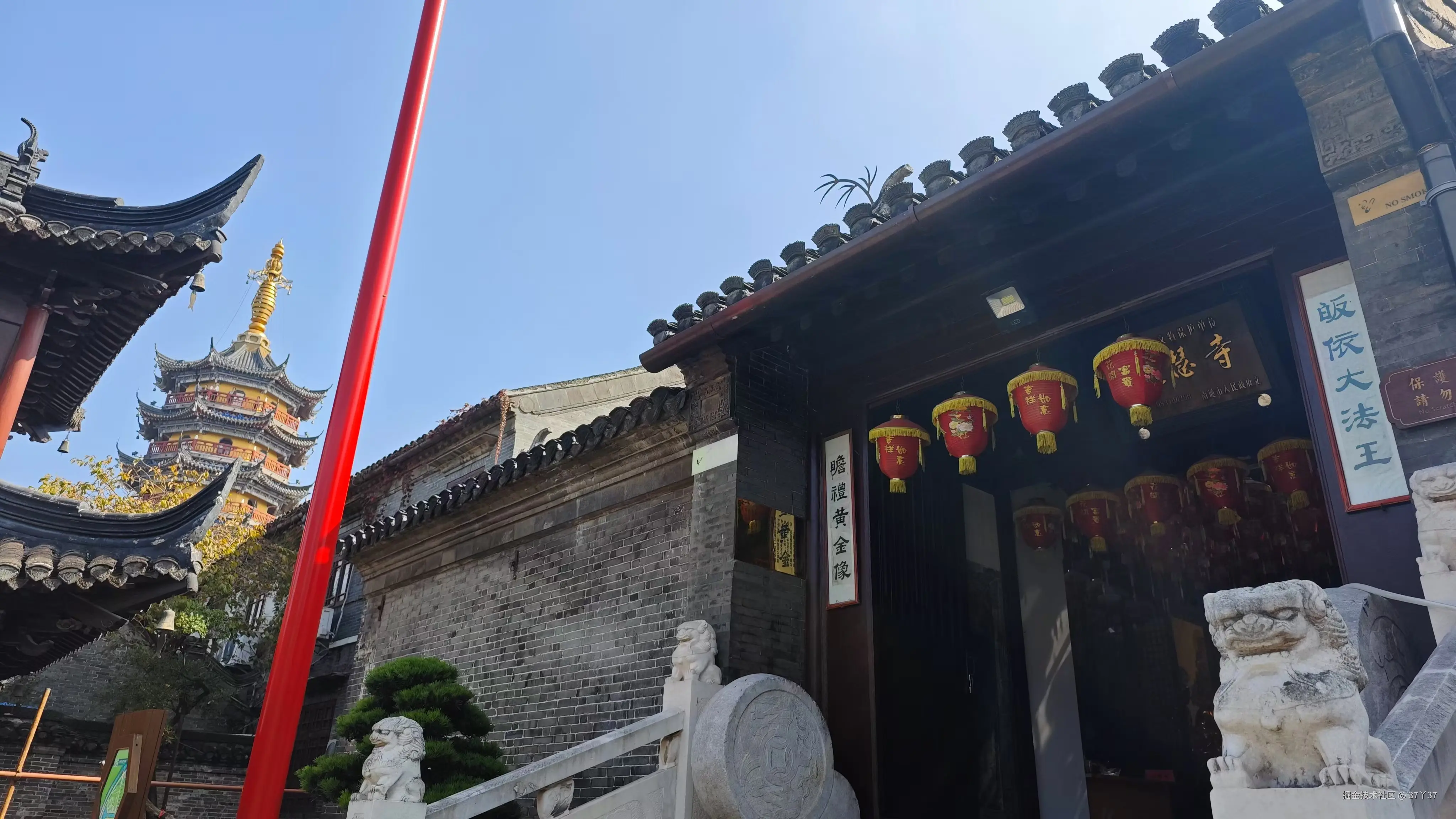 定慧禅寺收门票20元/人,完整的看了每一个大殿和佛像,我资历太浅确实也无法参悟,尽管大雄宝殿显得古朴,也首次看到了五百罗汉堂里的发着光的独特材质罗汉,但感觉这20块钱最值的地方就是寺庙东南角的观音塔,八角七层观音塔高45米,虽然是今年新建,但至少能登高望远,俯瞰护城河和如皋城,壮阔也好看