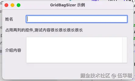 grid_sizer.Add(wx.StaticText(self, label="占用两列的控件,测试内容很长很长很长很长"), pos=(1, 0), span=(1, 2), flag=wx.EXPAND)