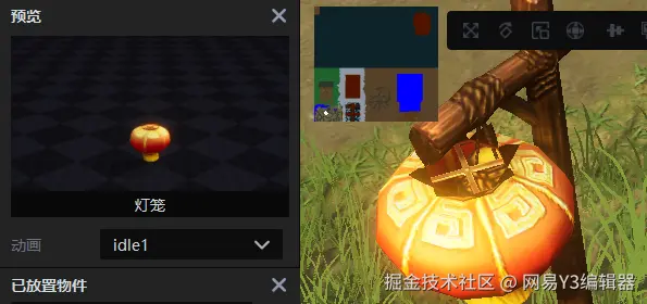 默认情况下可见的预览窗口显示对象在游戏中的外观,可以检查预设或自定义资产的外观,然后再将它们放入工作区。