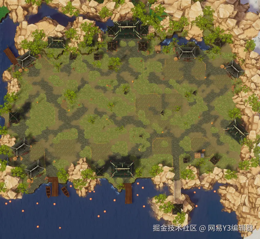 Y3编辑器窗口可显示游戏中的所有内容,可以通过简单的点击、游戏测试、移动相机和切换视图来修改对象。
