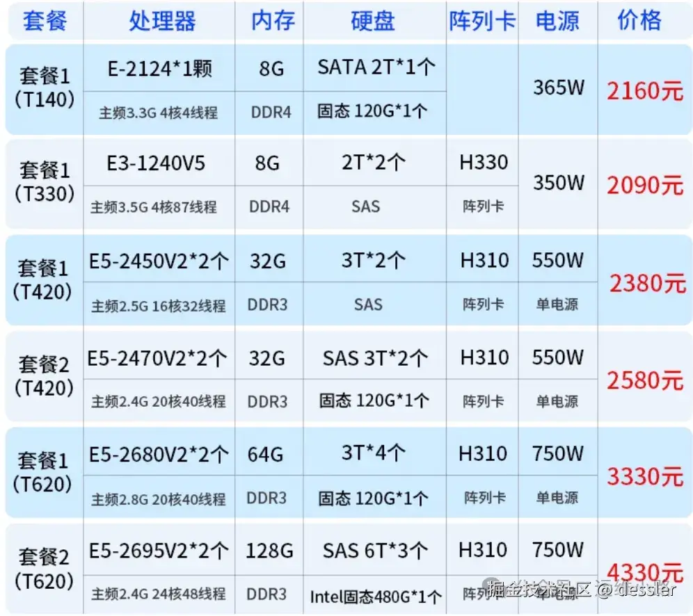 下面这些是我历史曾经想买的几种服务器,我简单的做下介绍: