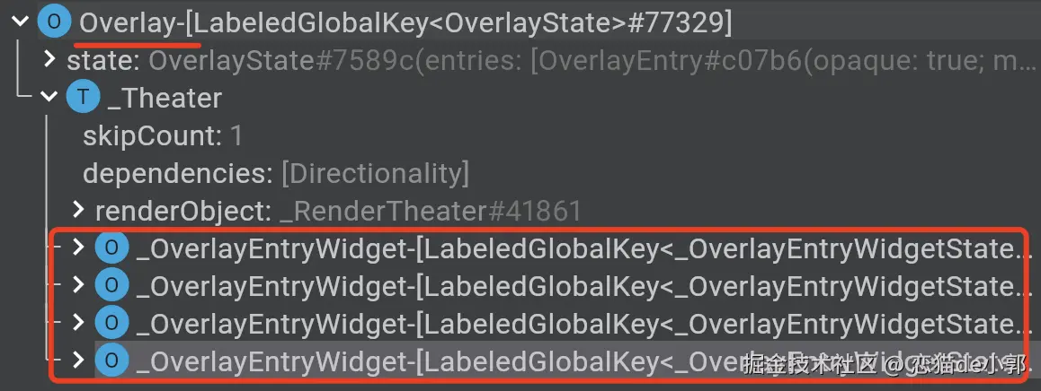 OverlayEntry都有持有一个LinkedList<_OverlayEntryLocation> _sortedTheaterSiblings的列表 -