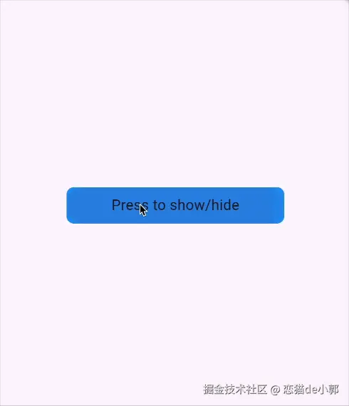 可以看到,在点击屏幕中间的按键之后, overlayChildBuilder 内的「提示文本」可以随意在屏幕任意位置出现和隐藏,也就是: