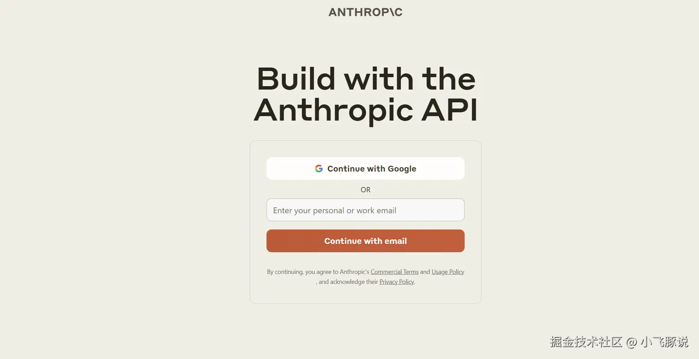 1.首先你需要准备一个Claude账号,用其登录Claude 控制台页面。如果不知道Claude如何注册,可以看这篇文章: Claude控制台链接:console.anthropic.com/login
