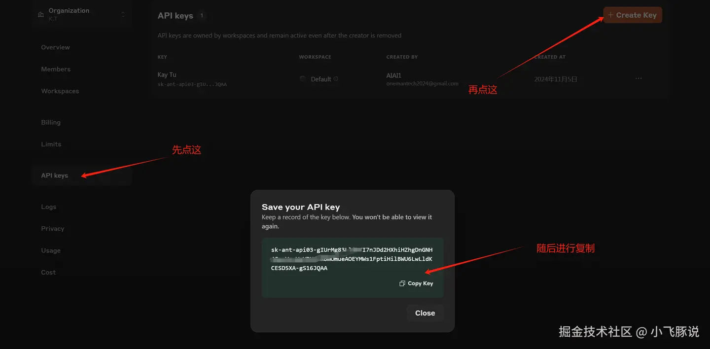 上面就是获取Anthropic API key的全部流程了。大家按照我的方法,一步一步来就可以。