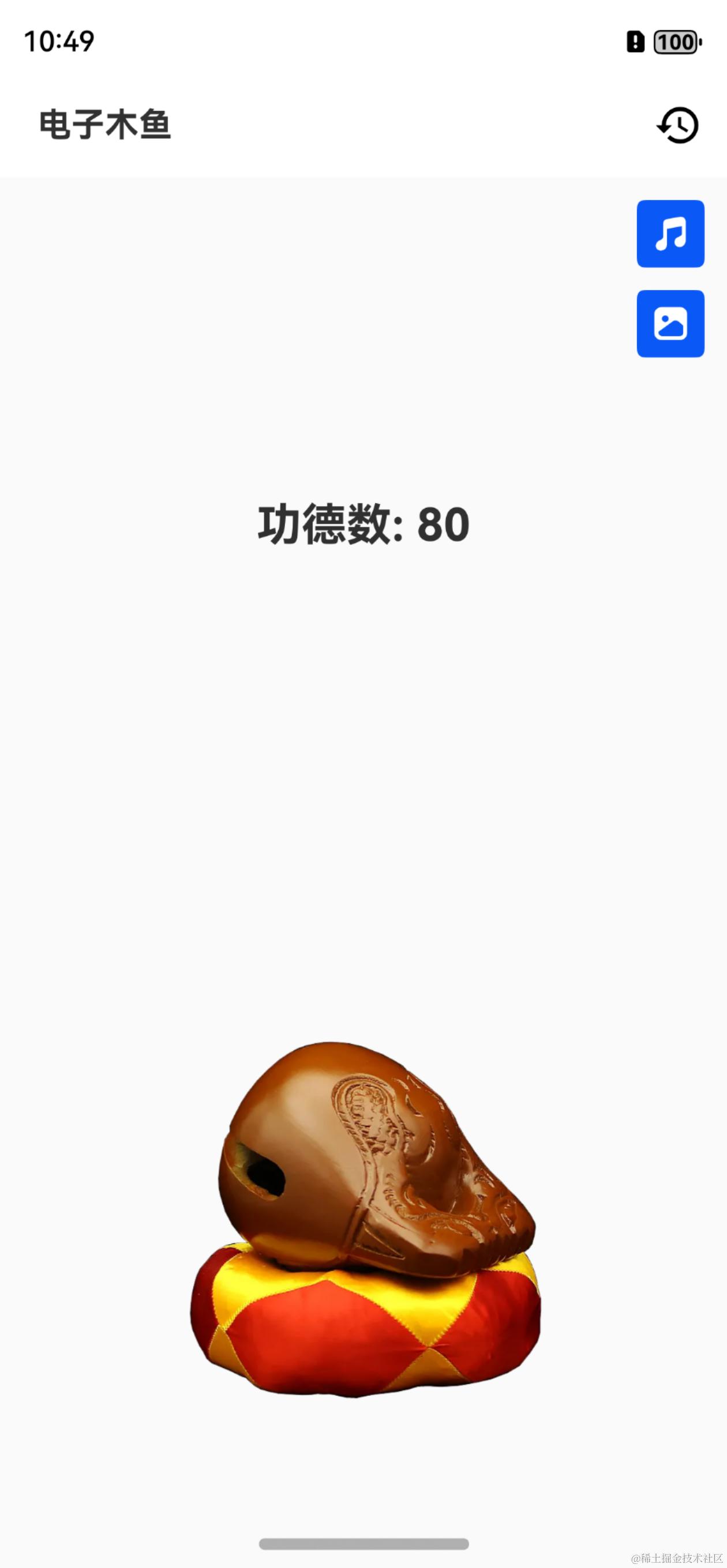 上一篇,我们简单了解通过 bindSheet 弹出底部抽屉框,实现了 选择音效 和 选择图片 基本功能,丰富了电子木鱼的玩法。本文将进一步完善功能,实现 记录功德列表 的功能: