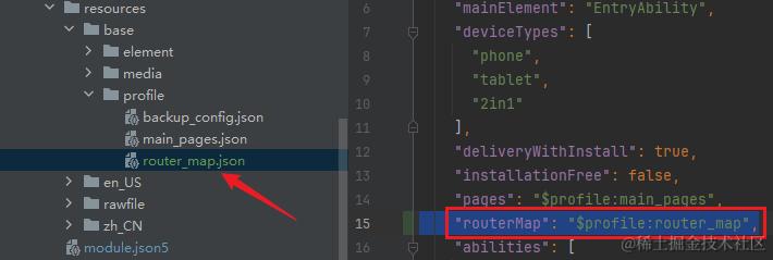 首先需要配置路由表,在 module.json5 中增加 routerMap 字段,指向 profile 里的 router_map.json,文件名可以任意,只要两处一致即可: