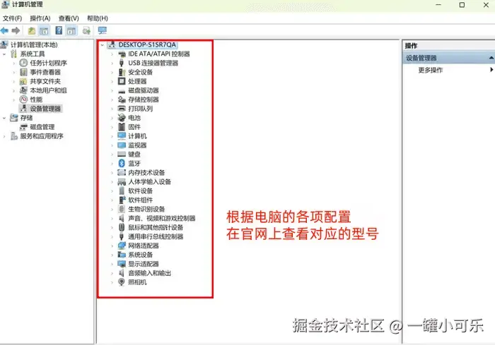 笔记本电脑型号在哪里看?在电脑设备管理中可以查看电脑的各项配置的参数,大家可以根据电脑的各项配置,然后在官网上找到对应的电脑型号即可。查看电脑各项配置的方法是右击【我的电脑】图标-【管理】-【设备管理器】,打开设备管理器即可查看。