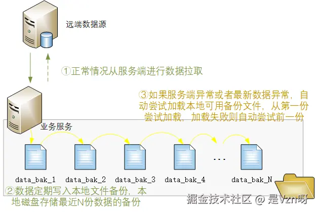- 为了应对远端数据源不可控风险,定期更新的时候都会将远端获取到的数据写一份到本地磁盘中进行备份,本地磁盘保存最近N个的备份。