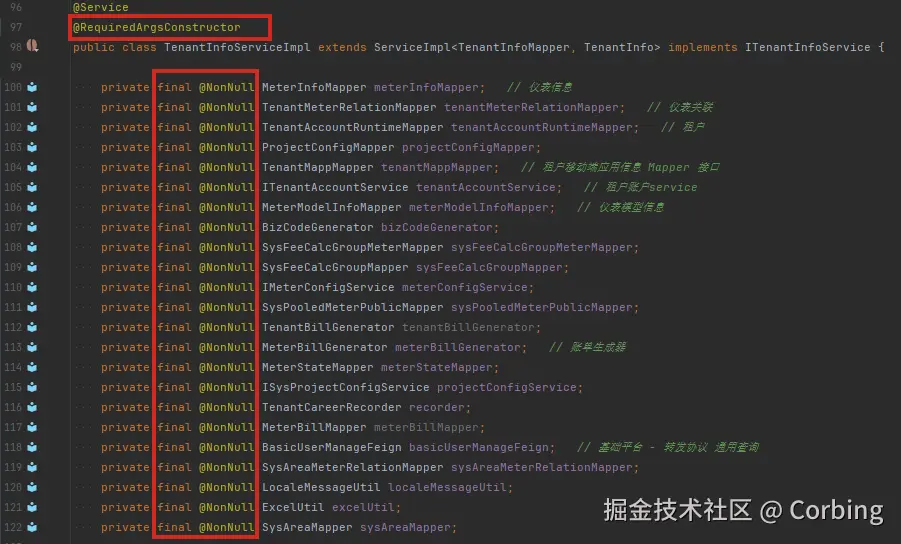 使用 @RequiredArgsConstructor + final @NonNull field 实现构造器注入Bean